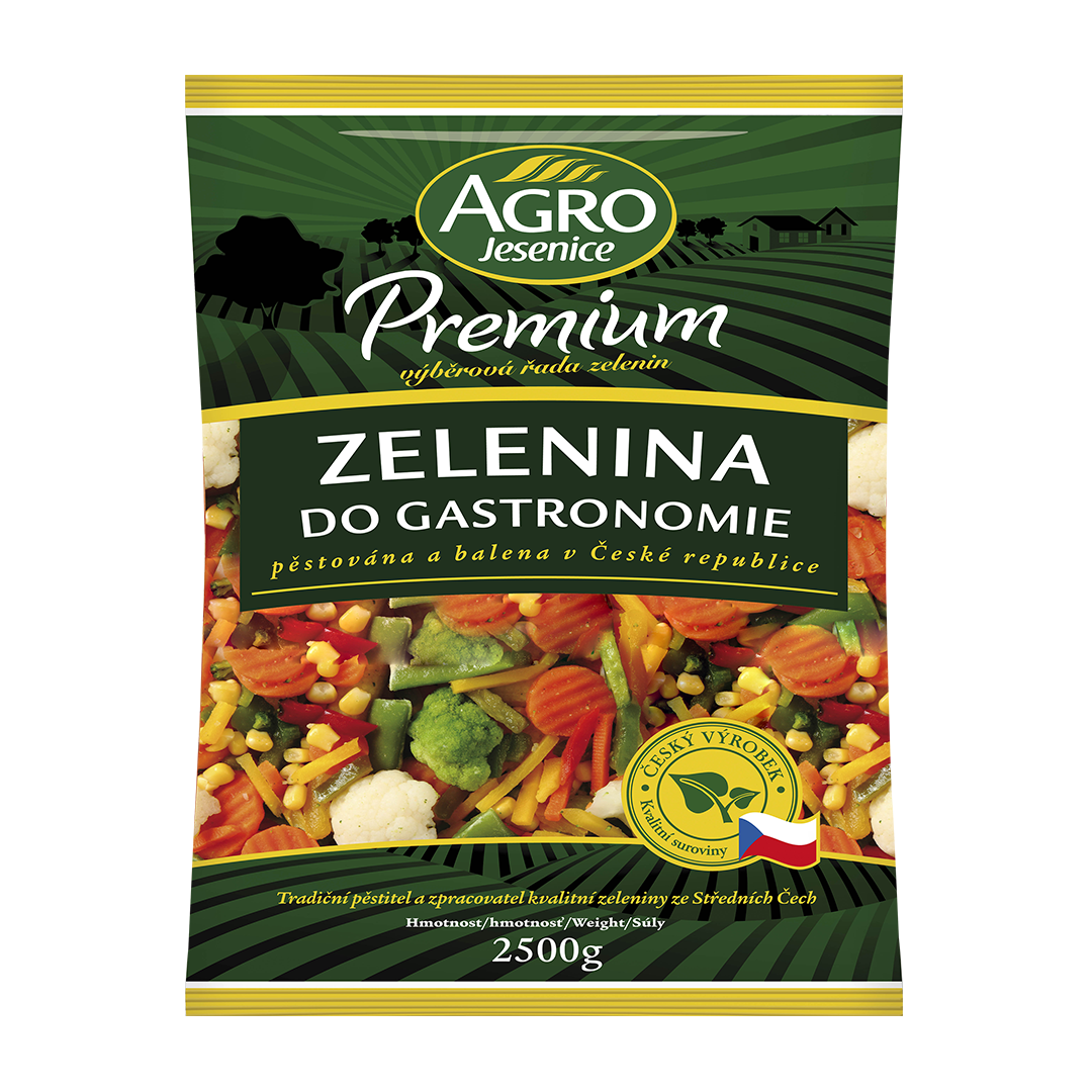Brokolice, květák růžičky, mrkev orient řez, paprika červená a žlutá pruh, fazolové lusky Romano, kukuřice mini kousky